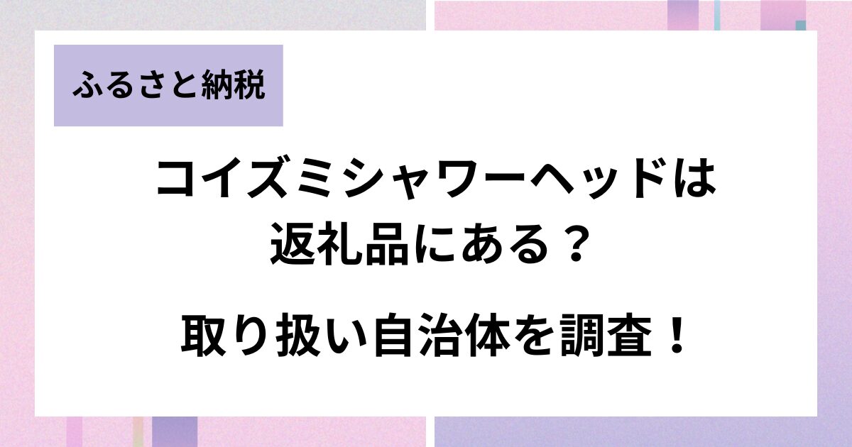 この記事では、コイズミのシャワーヘッドがふるさと納税で取り扱われているかどうかを詳しくご紹介します。